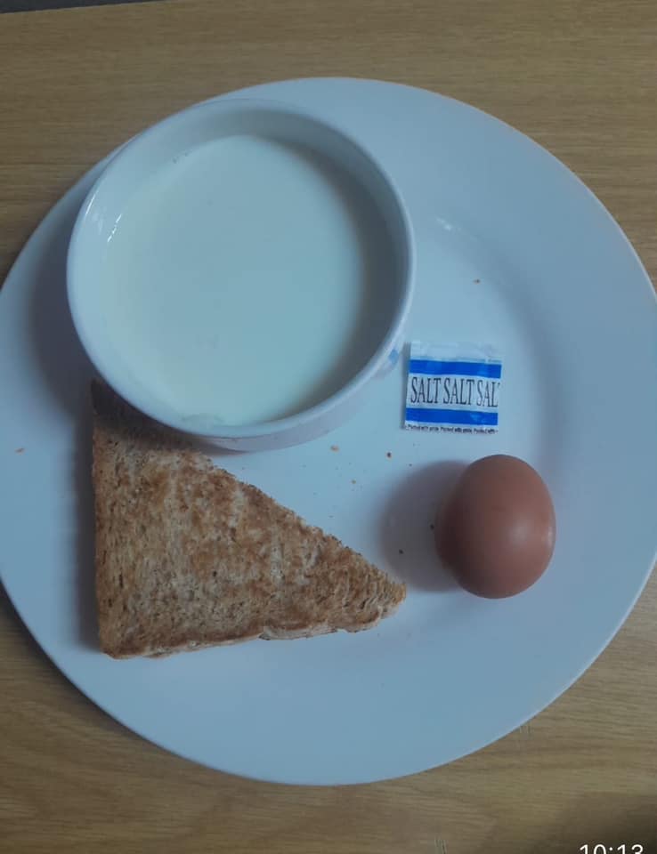 Sy het beweer dat inwoners ondermaatse maaltye ontvang wat uit karige porsies bestaan, vergesel van droë snye brood.