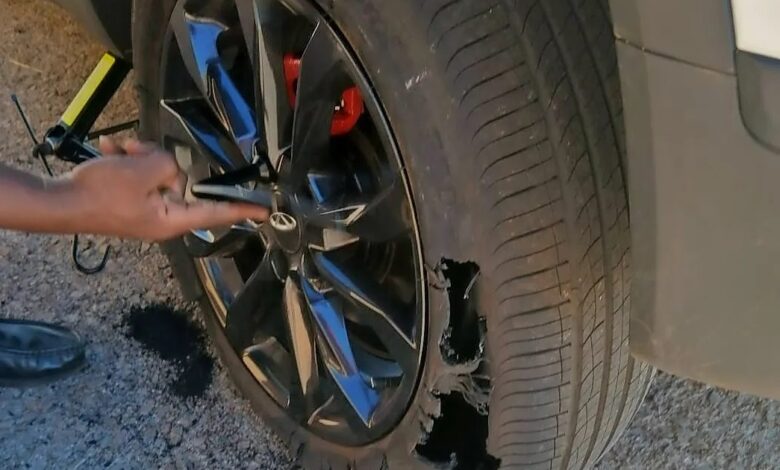 “Ek was net verby die eerste tolhek van Pretoria toe ek die Polo gewaar. Die bestuurder het naby my gery en my oënskynlik van die pad probeer dwing. Ek het aanhou ry, my oog op hulle gehou. Toe trek hulle voor my in en die passasier gooi spykers by die venster uit. Ek het die spykers getref en my band het dadelik pap geraak.