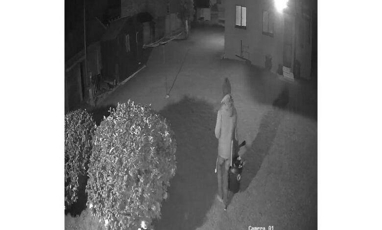 Volgens CCTV beeldmateriaal kan een verdagte gesien word wat in die erf rondsluip, en hoe hy daarna ’n stofsuier wegdra.