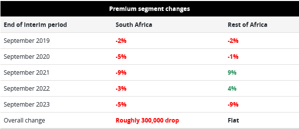 Van daar af was dit egter afdraand, met die premiesegment wat teen September 2023 tot 2,1 miljoen gedaal het, die laaste dag in MultiChoice se jongste finansiële verslagdoeningstydperk.
