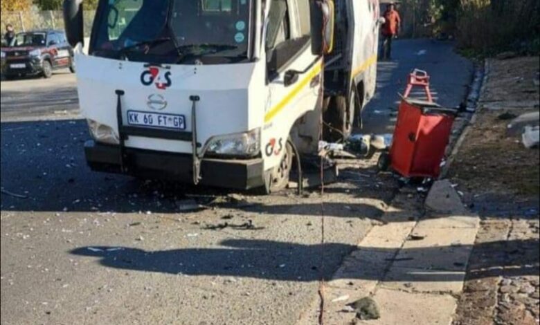 ‘n G4S-bussie wat naby die Lanyon-brug in Lakefield gereis het, is deur ‘n groep mans aangeval en die geldwa is gebombardeer.