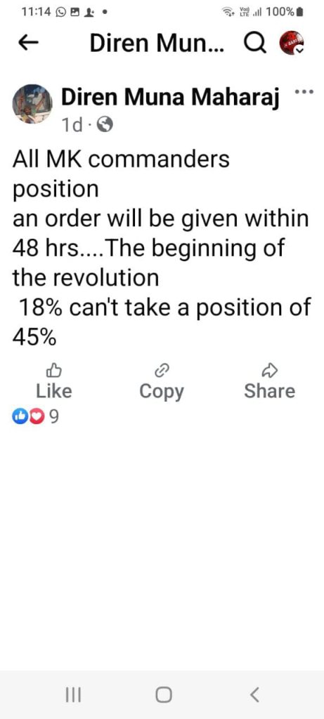 Volkskrag Nuus het beeldmateriaal bekom waar MK militante dreigende boodskappe stuur en waar hulle hulself openlik beywer vir ‘n “revolusie”. In ’n propaganda video vertel ’n MK lid hoe hulle die “White oppressors” haat en hoe hulle van die blankes ontslae gaan raak. Sien die video’s aan die einde van die berig
