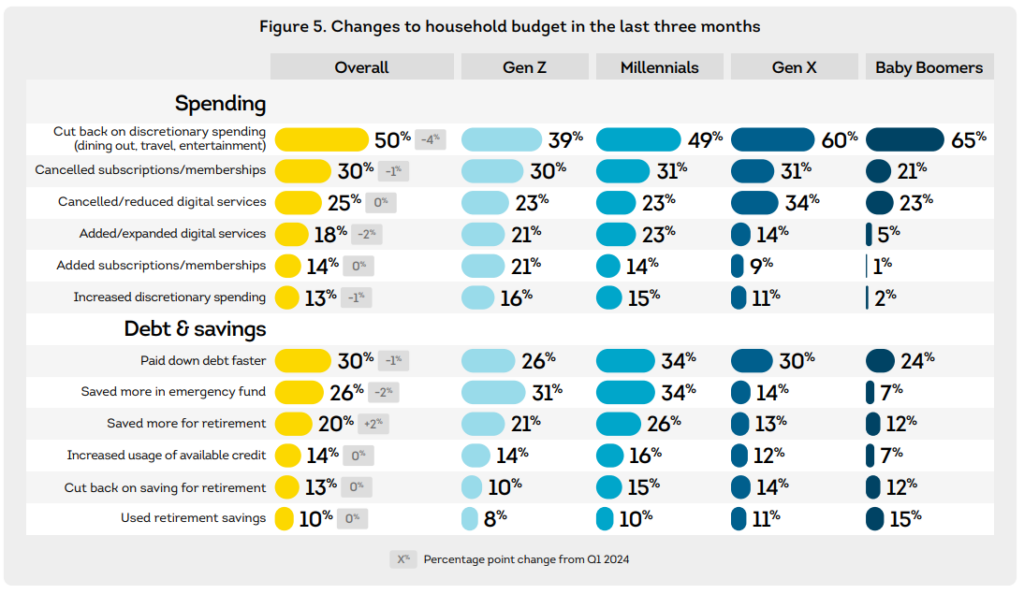 Dit het bygevoeg dat 50% van die verbruikers wat ondervra is, verwag word om diskresionêre besteding te verminder.