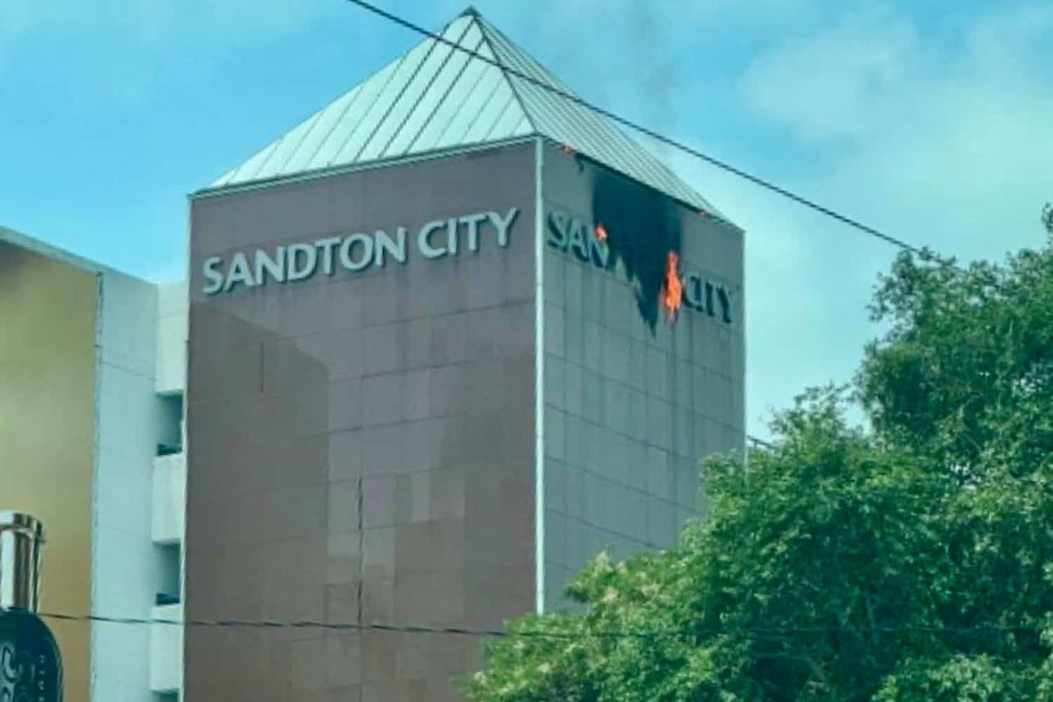 Sandton City het bevestig dat die brand op die eksterne fasade-borde van die parkeerarea op vlak agt ontstaan het.