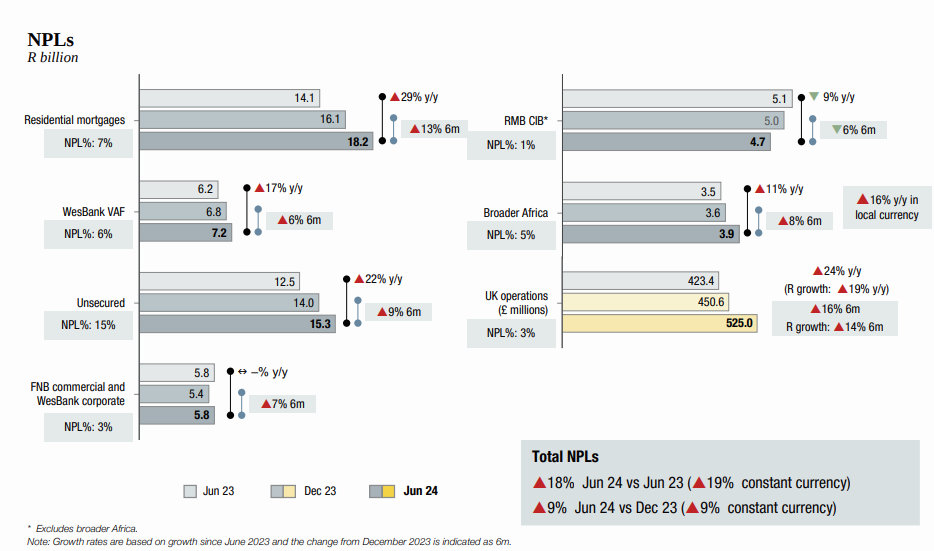 Gedurende hierdie tydperk het die NPL-verhouding van 4,7% tot 5,7% geklim, wat die toenemende onvermoë van huishoudings aandui om tred te hou met huis- en motorleningsterugbetalings.