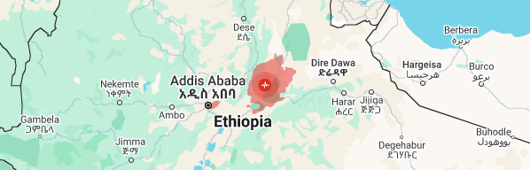 Die aardbewing se episentrum was 142 km oos van die hoofstad, Addis Abeba, geleë en was op ‘n vlak diepte van 10 km