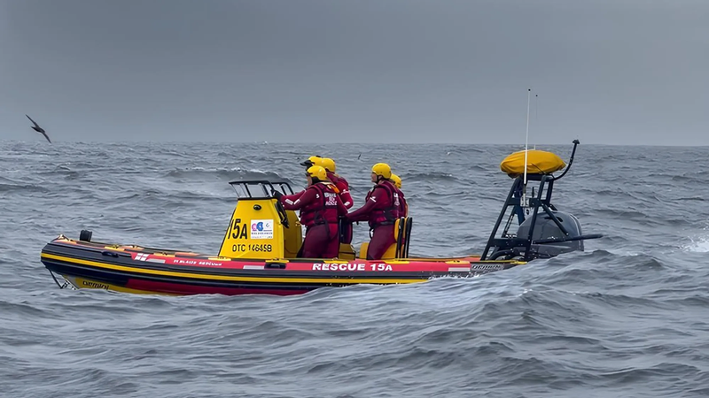 Nadat hulle in die sorg van NSRI-reddingswemmers geplaas is, het die NSRI-reddingsredder en die branderplankryers die gesin kop bo water gehou totdat die NSRI-reddingstuig opgedaag het.